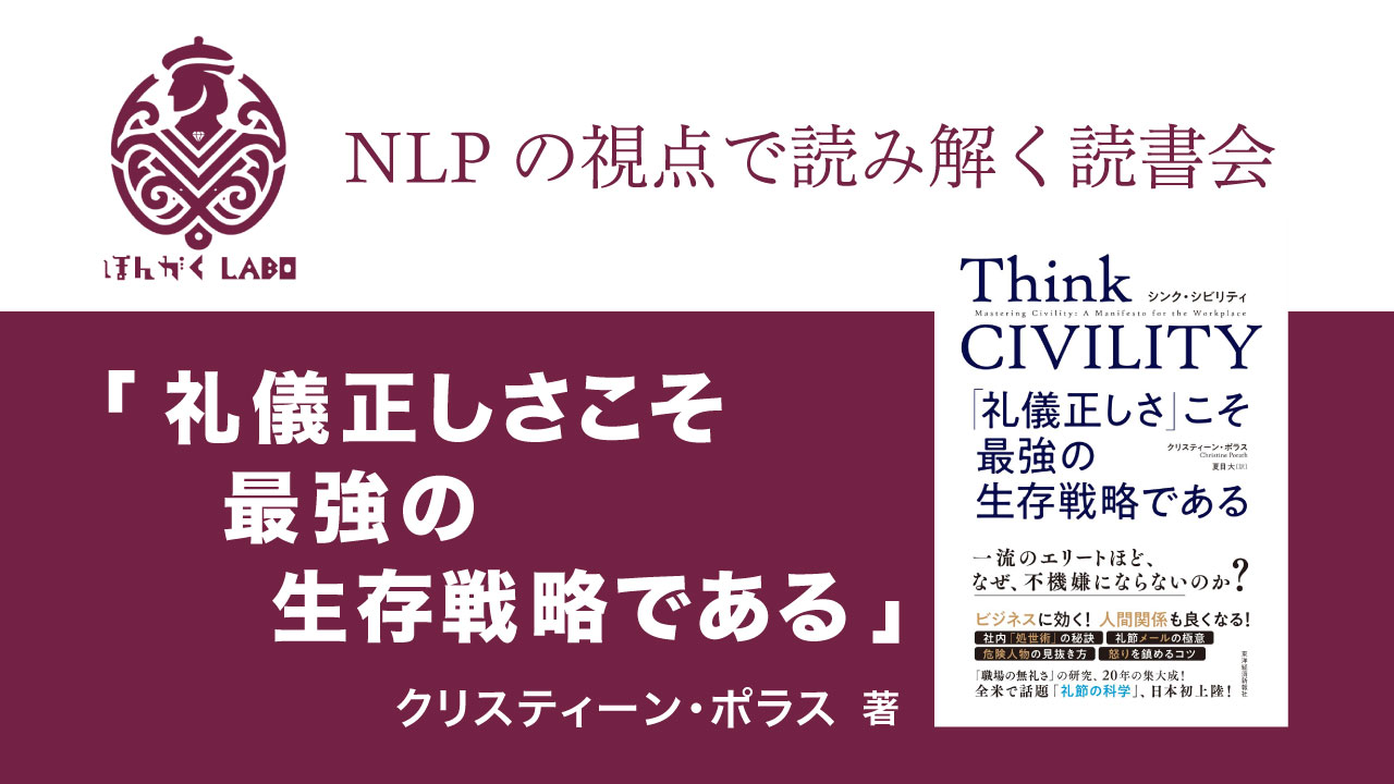 NLP 2026.02.06 会員限定: NLPの視点で読み解く読書会「礼儀正しさこそ最強の生存戦略である」 閲覧するには以下にパスワードを入力してください。 会員限定: ビジネス書解説読書会 「限りある時間の使い方」 前の記事